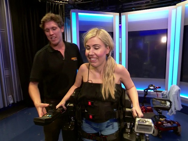Depois de quase 10 anos confinada a uma cadeira de rodas, a repórter da BBC Nikki Fox conseguiu andar de novo graças a um equipamento robótico motorizado.